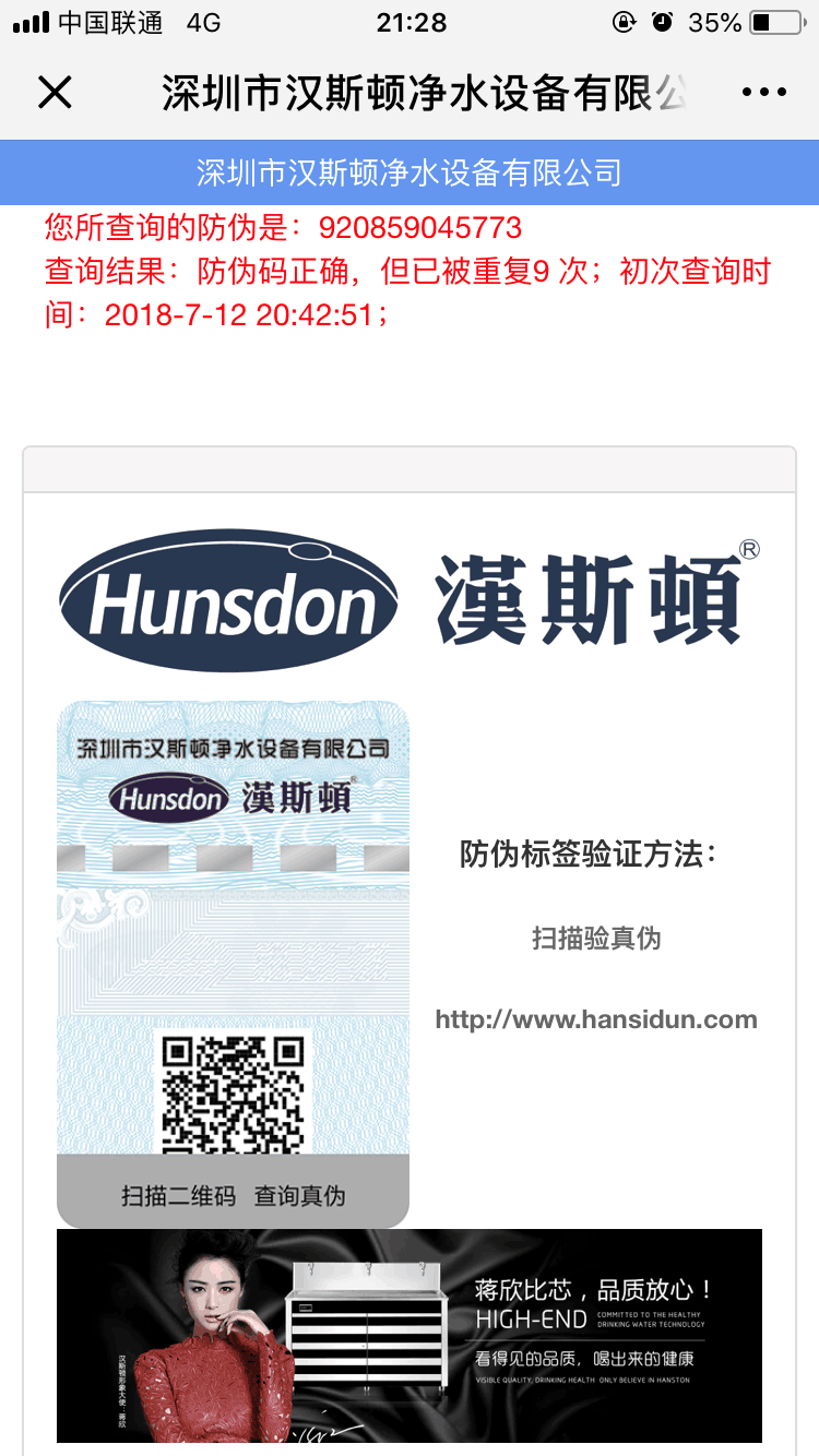 汉斯顿防伪二维码图示