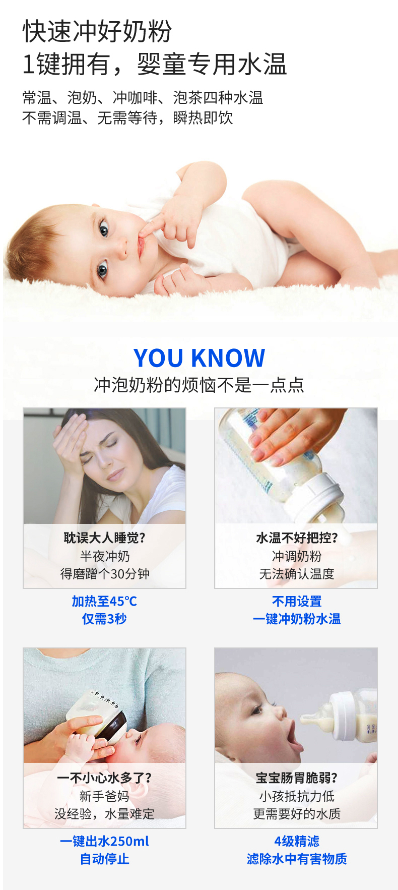 它颜值高、容量大、随时随饮,取之不尽用之不竭,还可根据自身需求调节水温,无论是直饮、泡茶、冲奶粉,随你而变!